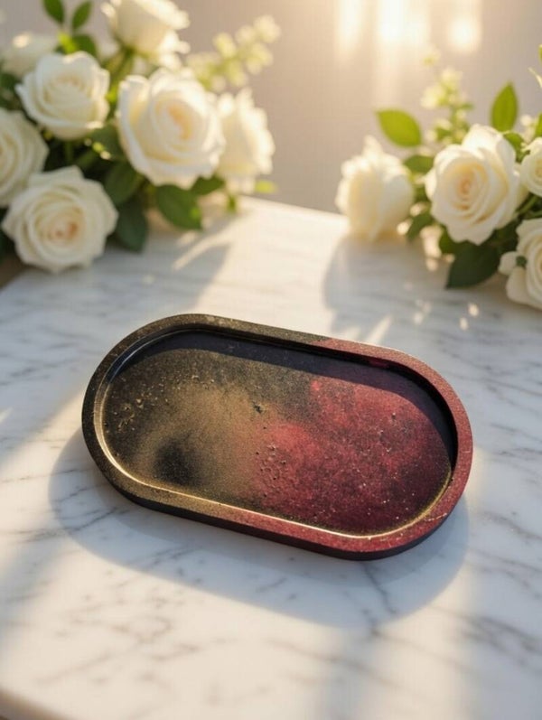 De combinatie van diepe roodtinten en een subtiele glansafwerking geeft de set een luxe, warme uitstraling. Perfect voor het opbergen van sieraden, sleutels of kleine accessoires, terwijl het kaarslicht een rustige en sfeervolle glow creëert.